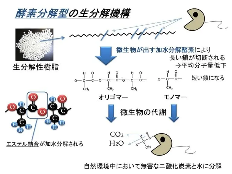 ▼出典:ECOsyou 生分解性プラスチック(biodegradable plastic)~分解機構編~