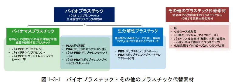 - バイオマスプラスチック:原料が植物などのバイオマス