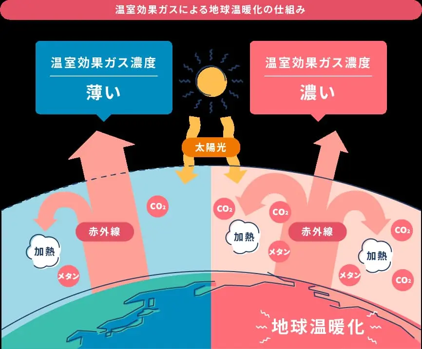 ここでは、温室効果ガスとしての役割と、地球温暖化が進む仕組みをわかりやすく解説します。