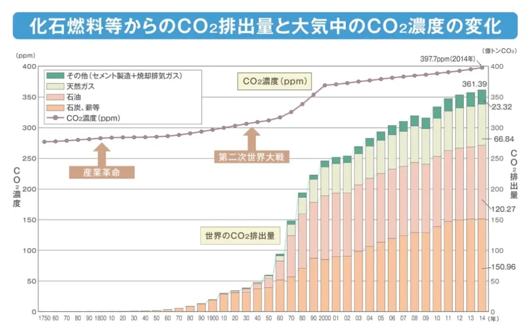 しかしその一方で、産業活動やエネルギー利用によって大量に放出されることで、地球の温度を少しずつ上げている“見えない要因”でもあります。