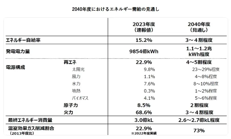 日本のエネルギーミックスは、安定した電力供給・気候変動対策・経済的持続可能性のバランスを取ることを目的に設計されています。