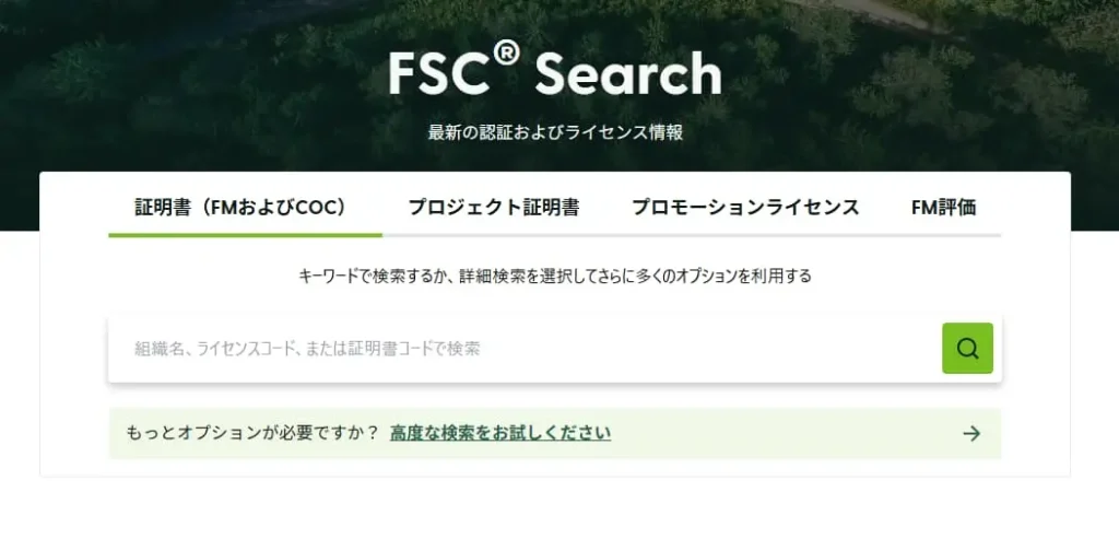 消費者や取引先は、FSC公式の公開データベース(FSC公式検索サイト:search.fsc.org)に番号を入力することで、