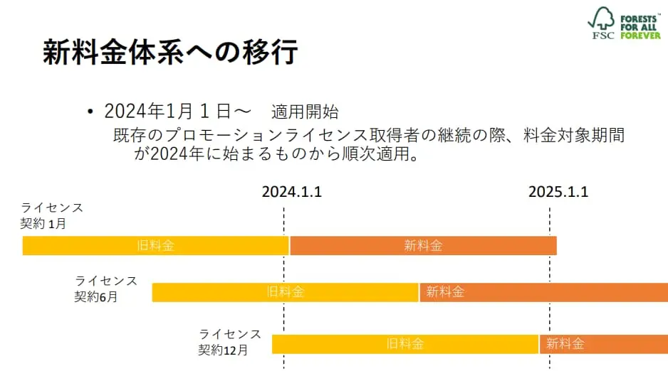 ▼出典:FSCジャパン FSC®プロモーションライセンス料金改定説明会