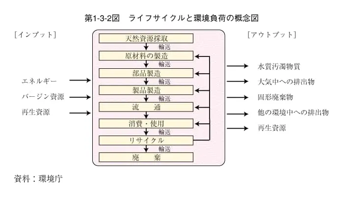 ▼出典:環境省 環境白書 環境効率性の実現に向けて−ライフサイクルアセスメント−