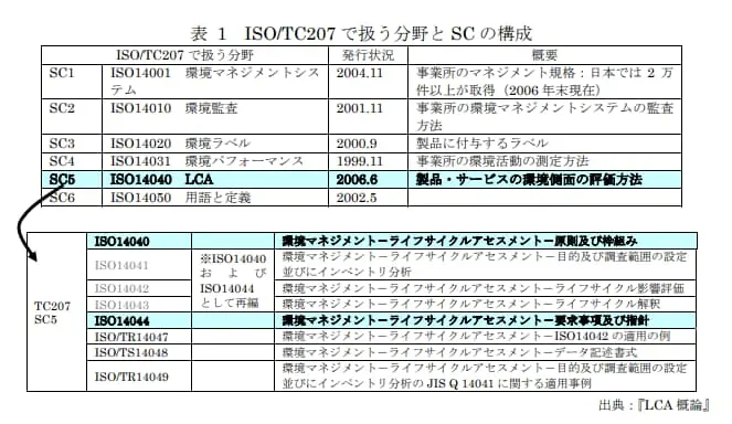 中でも中核をなすのが、「ISO 14040:原則と枠組み」および「ISO 14044:要求事項とガイドライン」の2規格です。
