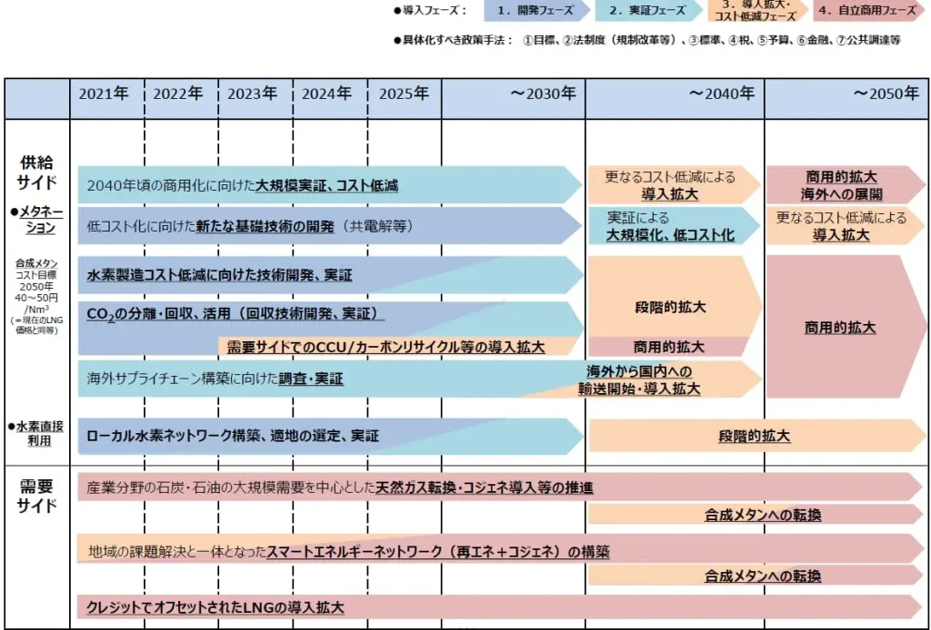 これに対し、メタネーションは再生可能エネルギーと既存インフラを直接結びつける技術として、より早期の実用化が期待されています。