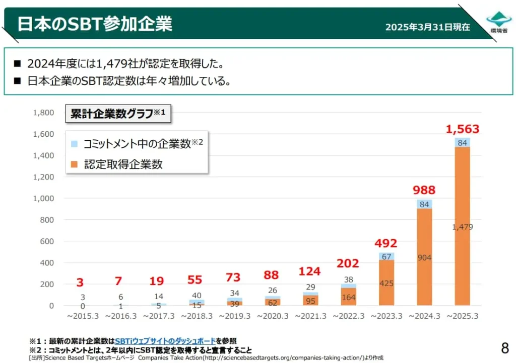 この数字は、SBTが一部の大企業だけでなく、中小企業にとっても現実的で有益な制度として定着しつつあることを示しています。