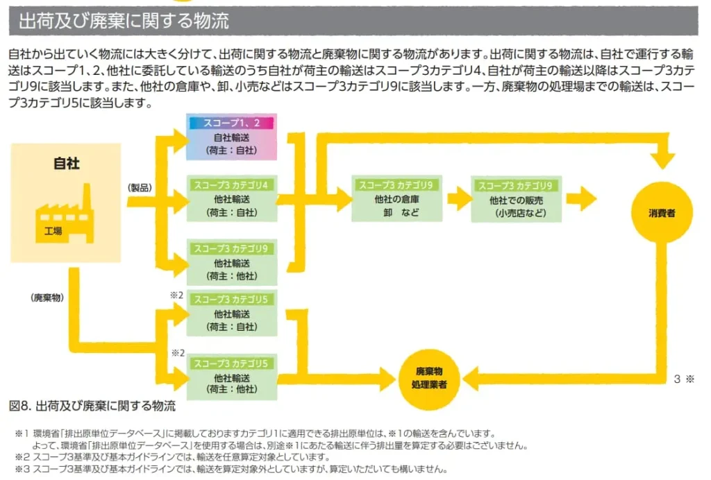 Scope3のカテゴリ9「下流の輸送・配送」は、企業が販売した製品を消費者に届けるまでの物流過程で発生する温室効果ガス(GHG)排出量を対象としています。