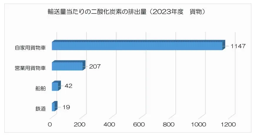 実務では「貨物1トンを1km輸送するあたりのCO₂排出量(g-CO₂/トンキロ)」を指標とするケースが多く、国際的にも比較可能性の高い単位です。