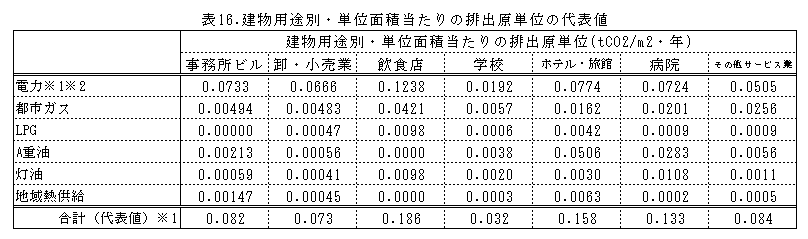 環境省の排出源原単位データベースにある「事務所ビル:0.082t-CO2/㎡・年」という代替値を用いると、
